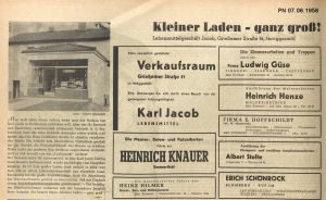 [[File:1958-06-07-GrießemerStr58.jpg|mini|Lebensmittelgeschäft Jakob, Grießemer Straße 51]] | |||