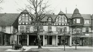 <p>'''1910''' war Forstmeister Georg Kruhöffer aus Kolmar Eigentümer dieses Hauses. Gemeldet waren hier die Reichsadler-Apotheke von Hans Wünnenberg (ab 1925 als Drogerie in der [[Pyrmont:Straßen:Brunnenstraße:Brunnenstraße39|Brunnenstraße 39]]), Leopold Levy mit seinem Lager besserer Schuhe (ebenfalls [[Pyrmont:Straßen:Hauptallee:Hauptallee16|Hauptallee 16]]), der Rentner August Ficke sowie Marie und Fritz Lutter. | |||