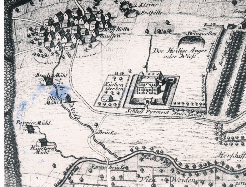 Ansicht von Pyrmont aus Philipp Seip "Beschreibung der Pyrmontischen Brunnen, ..." von 1717